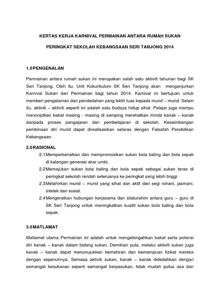 Kertas Kerja Karnival Permainan Antara Rumah Sukan Pdf