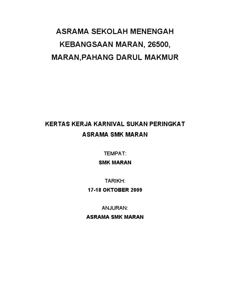 Kertas Kerja Karnival Sukan Asrama Pdf